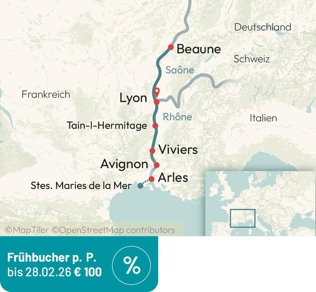 Traumhafte Landschaften und beeindruckende historische Stätten - bei einer Flusskreuzfahrt auf der Rhône können Sie in einer Woche viel sehen und erleben! Lyon – Viviers – Arles – Avignon – Tournon / Tain-l'Hermitage – Lyon