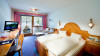Zimmer: Die gemütlich eingerichteten Zimmer verfügen über Bad oder Dusche/WC, Föhn, Bademantel, Telefon, Sat-TV, Safe, kostenfreier WLAN-Internetverbindung sowie teilweise Balkon. Per Aufzug sind Zimmer bis in die zweite Etage erreichbar.