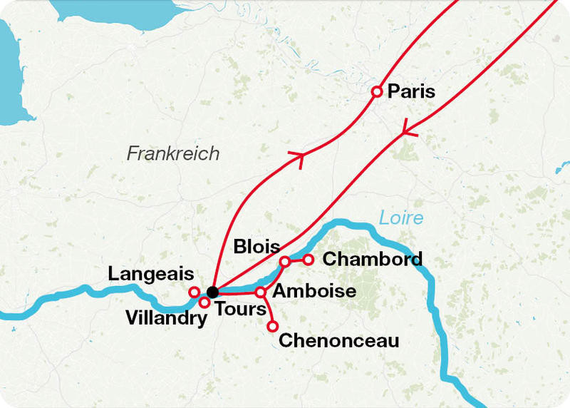 Der heutige Vormittag steht ganz im Zeichen des Schlosses von Amboise. Amboise ist eine der ältesten Residenzen an der Loire und wird wegen seiner majestätischen Erscheinung von vielen Besuchern als eine der schönsten angesehen. Schon Leonardo da Vinci wählte Amboise als künstlerische Wirkungsstätte. Da Vinci liebte das Tal der Loire und verbrachte die letzten Jahre seines Lebens im nahegelegenen Herrenhaus Clos-Lucé, welches wir anschließend besuchen werden. Aller guten Dinge sind drei, so besuchen wir auch am heutigen Nachmittag ein drittes Schloss und zwar das Lieblingsschloss der meisten Besucher – Chenonceau. Das im frühen 16. Jhd. erbaute Schloss gilt als die vollendete Schöpfung der Renaissance. Schloss und Umgebung sind ein Ort der Harmonie und des Friedens. Auch Sie werden von der gelungenen Komposition aus Natur und Architektur begeistert sein. Am späten Nachmittag Rückkehr nach Tours.