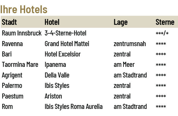 Hotel- und Reiseleiternamen vorbehaltlich Änderungen.