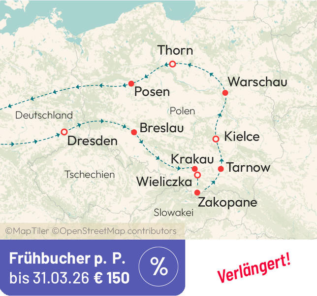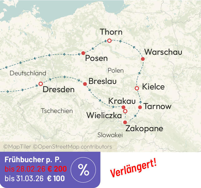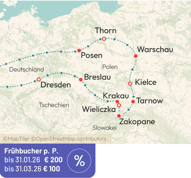 Stadtbesichtigungen in Breslau, Krakau, Zakopane, Thorn und Posen