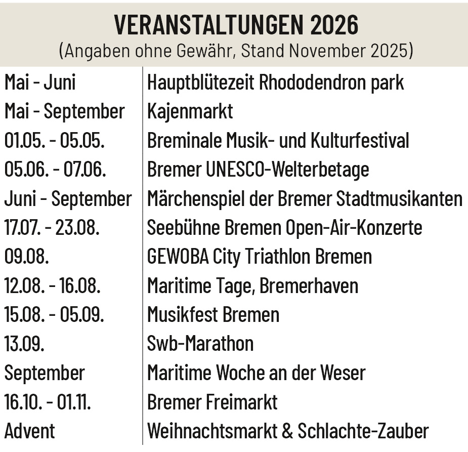 Eintrittskarten für Veranstaltungen sowie Ausstellungen/Museen in Bremen und/oder Bremerhaven