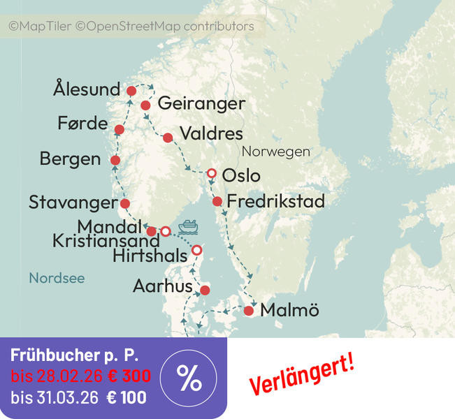 Traumhafte Welten – hohe Berge, tiefe Fjorde, auf Traumstraßen durch eine der schönsten Landschaften Europas. Neben den Naturschönheiten erleben Sie die alte Wikingergeschichte. Oslo ist der Ort für das neue moderne Norwegen. Kultur und Natur auf einer Sehnsuchtsreise im hohen Norden.