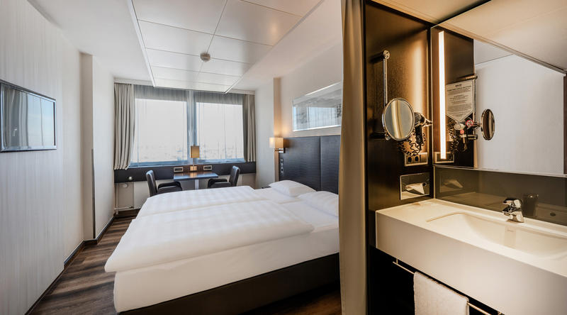 Zimmer: Die klimatisierten Standardzimmer (allesamt Nichtraucher)sind in modernem Design und warmen, eleganten Holztönen gestaltet. Sie verfügen über Bad oder Dusche/WC, Föhn, Safe, Telefon, Flachbildfernseher und High-Speed-Internetzugang.