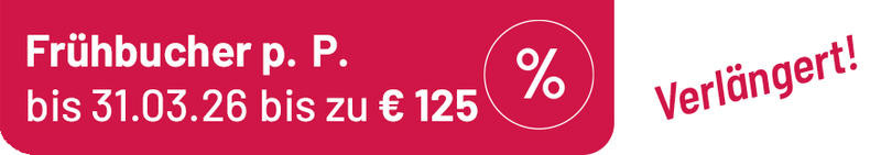 Leistung: 1 x Nachübernachtung und Frühstück am Rückkunftstag von Ihrer Reise im Doppelzimmer, Preis gilt pro Person und die Leistung muss für beide Personen im letzten Buchungsschritt ausgewählt werden.