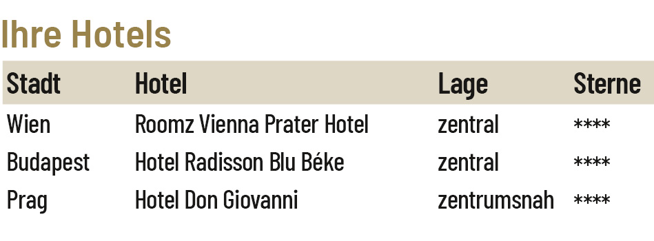 Mit Wien, Budapest, Bratislava und Prag