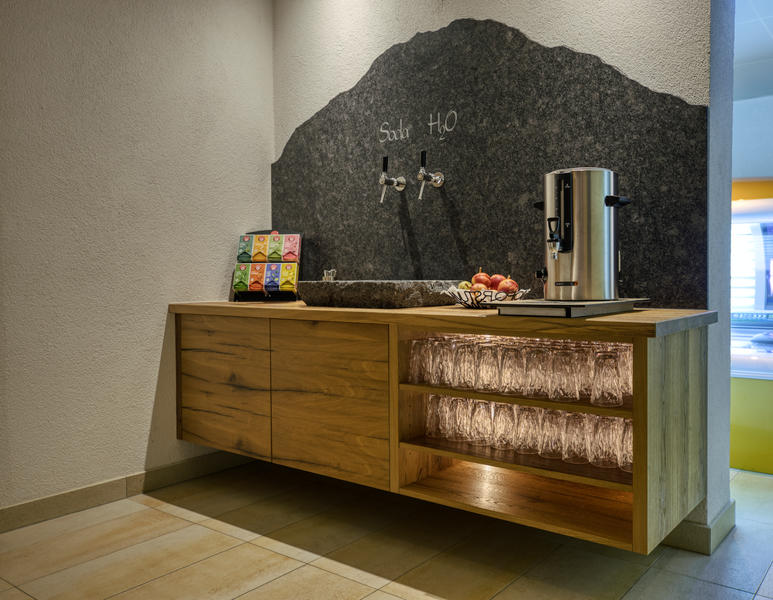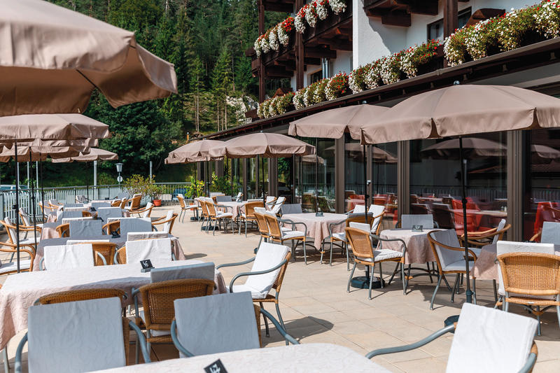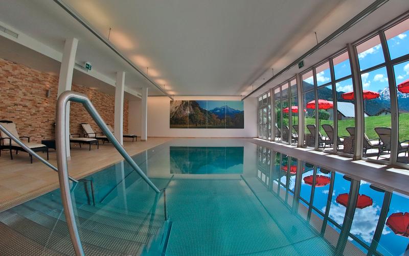 Ausstattung: Das Hotel bietet nationale und internationale Spezialitäten. Auf der Sonnenterrasse genießen Sie neben kulinarischen Delikatessen einen wunderschönen Panoramablick auf die umliegende Bergwelt. Der über 2.000 m² große Gartenpark und der moderne Vitalbereich mit Panoramablick laden zum Verweilen ein: Entspannen Sie im Wellnessbereich mit Pool, Sauna, Dampfbad, Solarium, Infrarotkabine und großzügigem Zirbenholz-Ruheraum sowie einer Teebar.